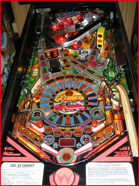 The Getaway playfield. No matter how many times I took the photo, the flash washed out the red on the apron. :) <<- Back
