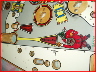 ABOVE: There was also wear (along with around Marilyn and Gorbie) around the Santa insert. Ball swirls were also present around the pop bumpers.