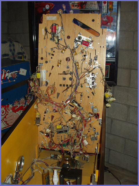 The playfield is put back into the cabinet and the "piecing together" of the underside begins <<- Back
