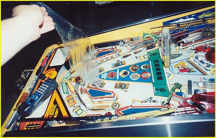 85% DONE: Getting close to the end. However, I just noticed two mylar half-moons next to each slingshot. Sigh. Better get the other bottle of "goo-gone". <<- Back