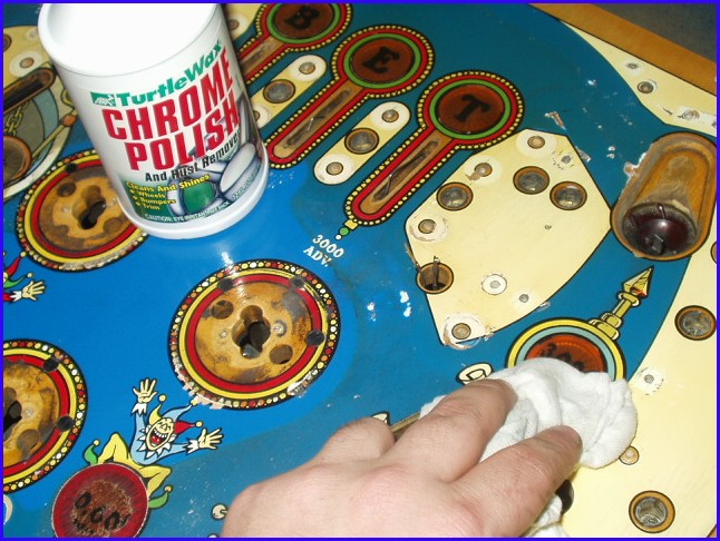 On "laquer" playfields, I use "Turtle wax chrome polish" to clean. It isn't a miracle worker.