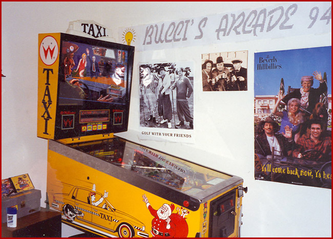 Here is an interesting photo, my FIRST pinball machine ever, Taxi. This was taken in 1994, a year after I picked it up. I was probably 16 or 17 as it sat in the corner of my bedroom in the apartment my mom and I lived in (or, Bucci's Arcade, that is.......hee hee).