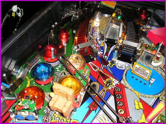 The Addams Family playfield has five pop bumpers nicely nested together. If you hit them just right, it can create quite a show! <<- Back