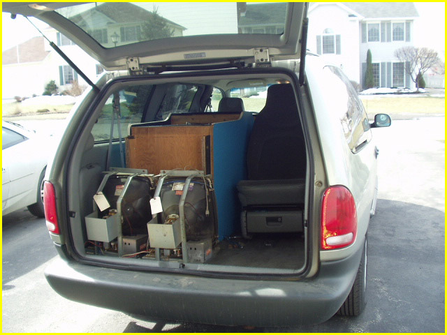 Here's a shot before we unloaded into my basement. Notice the seat at the right. That's where I spent my couple hour drive home. I was a tad dizzy after that trip. <<- Back