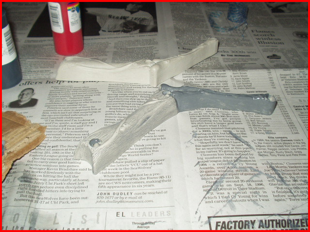 Slam the part with paint and then take a rag and wipe. The paint stays in the cracks and creates the look originally intended. <<- Back